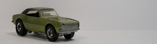 In the 1980's MATTEL continued to introduce new series. Series were themed Super Heroes, Fanciful Demonic Creatures (DEMONS), Work Class and Rescue Vehicles. Wheel types were used as the basis for particular series such as the ULTRA HOTS released in 1984, Billed as the fastest HOT WHEELS ever, While the REAL RIDERS released in 1983 had rubber tires. The Real Riders were well suited for the sand box. In 1983 Hot Wheels celebrated there 15th. anniversary and offered an anniversary package containing three vehicles and a 15th. Birthday Belt Buckle. Included in the anniversary pack was a close remake of the 1968 CUSTOM CAMARO, Having a metallic Lime Green body, Black roof and Black-Wall Basic Wheels.