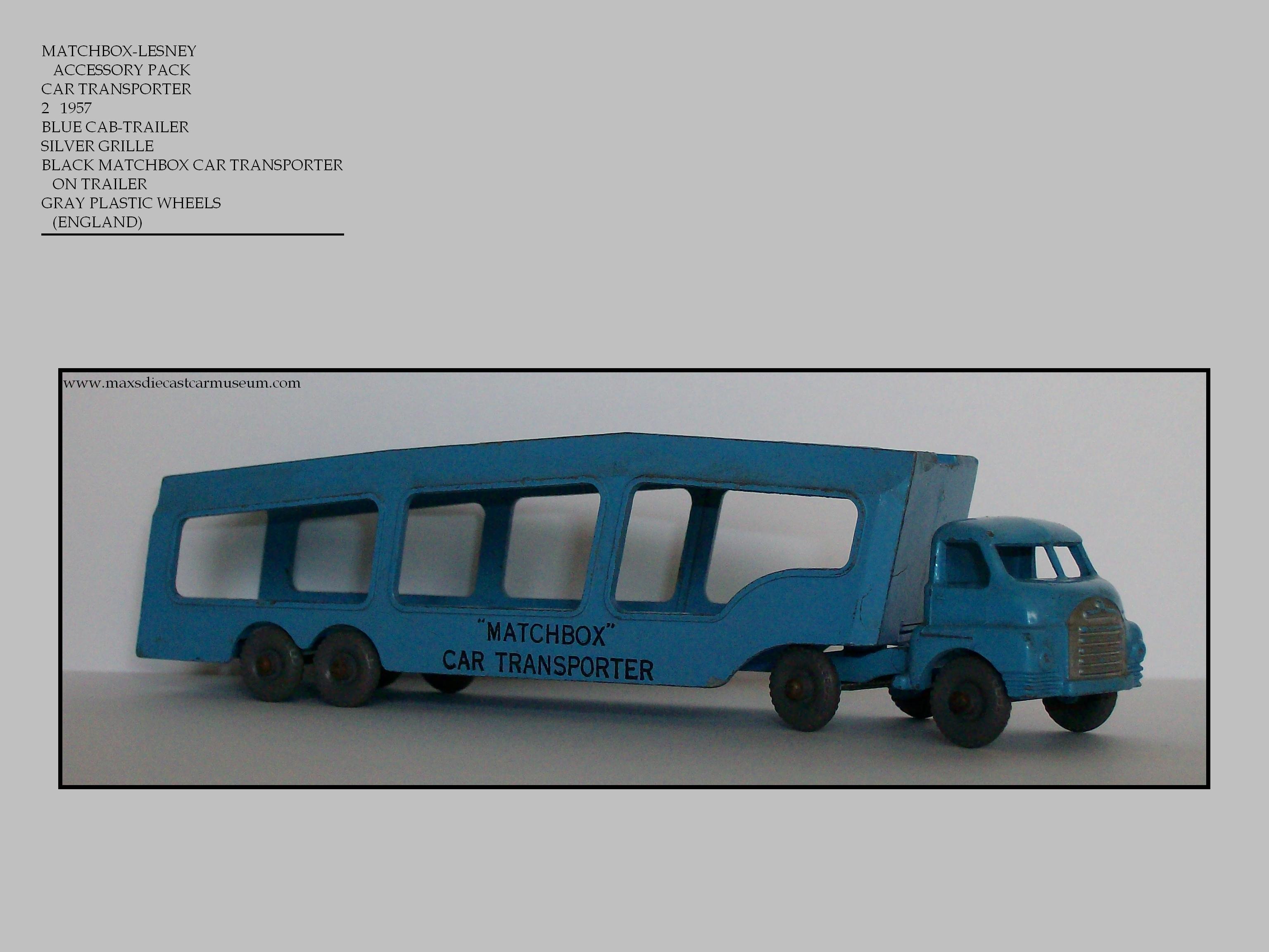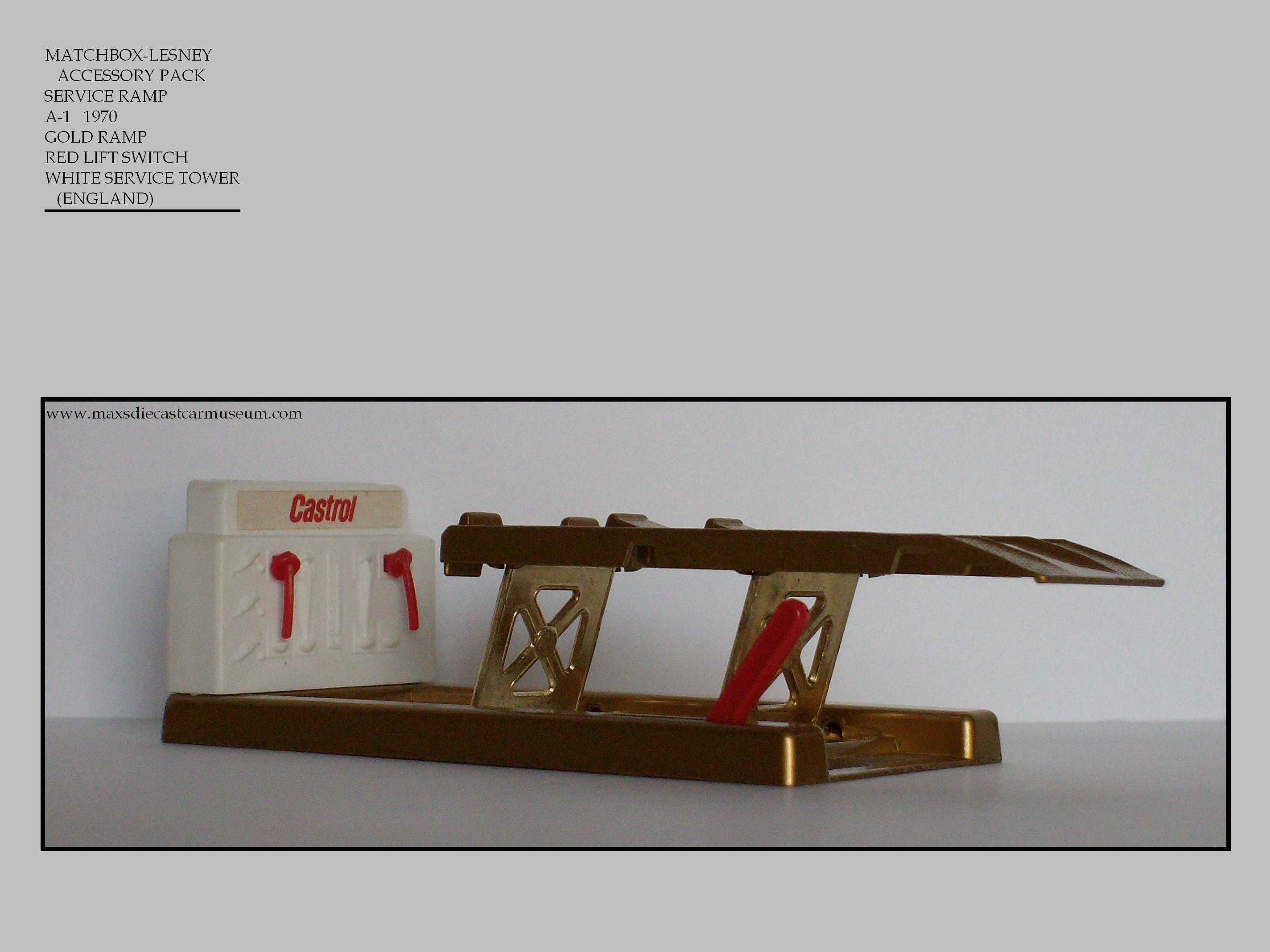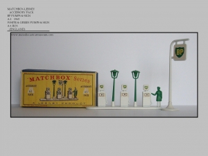Early ACESSORY PACKS were of Road Signs, Garage, Store, Pump's and Car Transporter. Some Acessory Pack's became part of gift sets. The Car Transporter is the only vehicle released in the Acessory Pack series. It then became one of seven cars in a Presentation Set and again as part of a gift set.