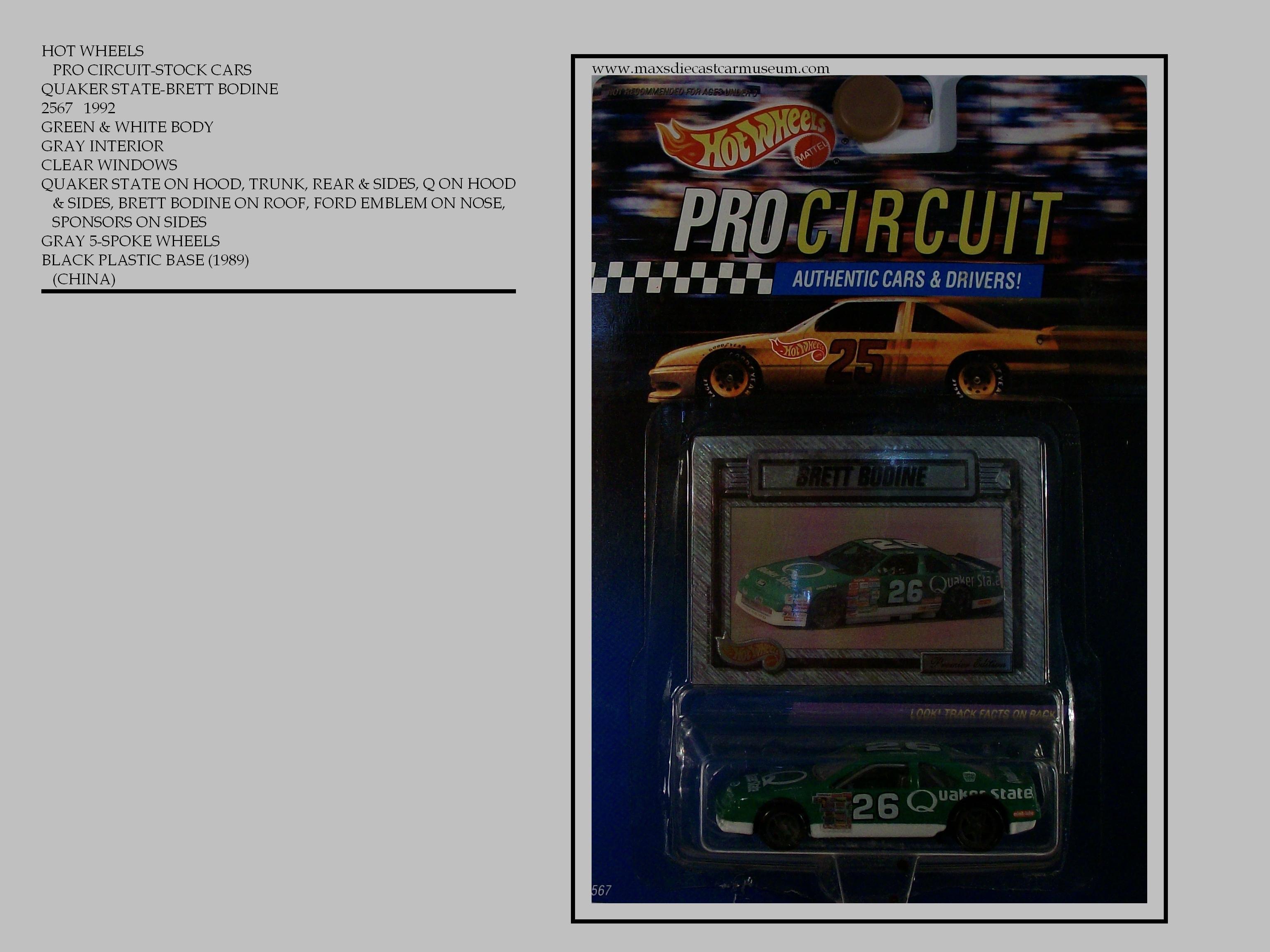 The 1992 release of the PRO CIRCUIT series offered models designed after Nascar and Indy Race cars. Included in this series is the then already legend, Numer 43 RICHARD PETTY.