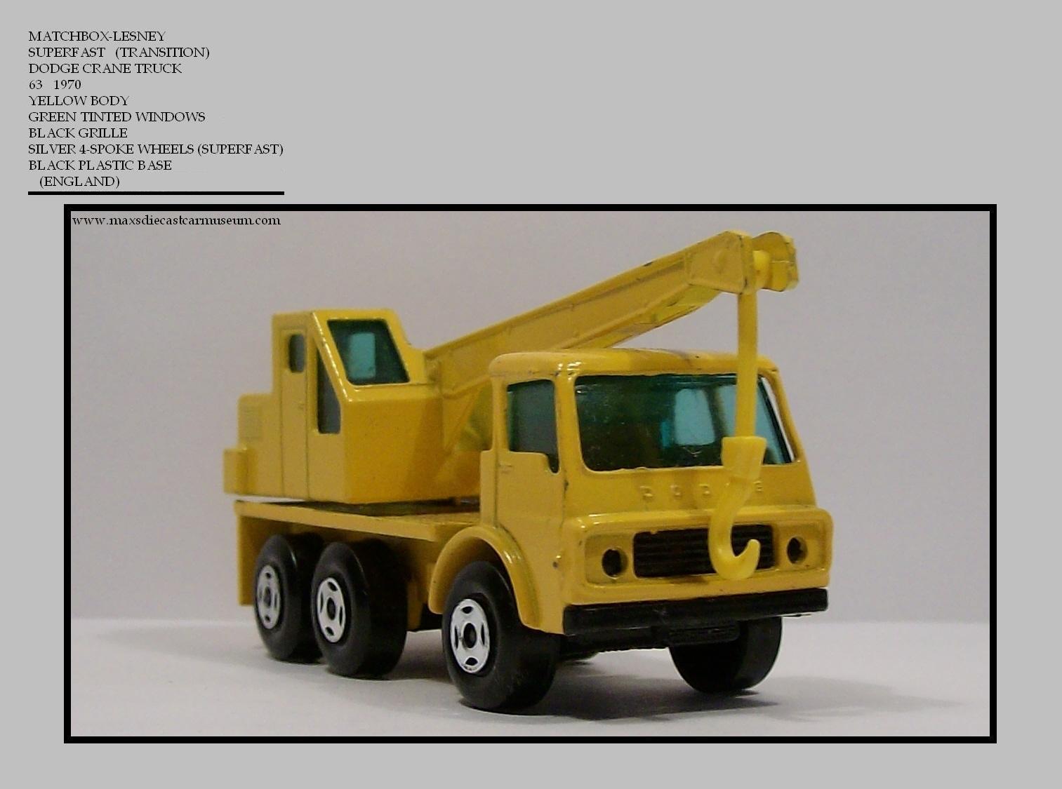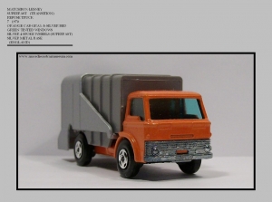 Although TRANSITIONS are a part of diecast history throughout. The most recognized and refered to as Transitions, are the models produced when LESNEY went from REGULAR WHEELS to SUPERFAST WHEELS in late 1969 and into 1970. Is what makes these models refered to as such is the fact that Lesney used previously released Regular Wheels models to produce the new SUPER-FAST models. While some models were getting color changes, others were left as they had been. The #7 FORD REFUSE TRUCK with orange cab and chassis and gray bed was not changed in this Transition.