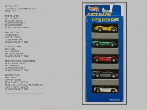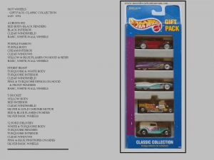 The GIFT PACKS include multiple cars, Both series versions and it's own variation can appear. The CLASSIC NOMAD with silver 3-spoke wheels is the Gift Pack variation, While the gold 3-spoke wheels variation is also found as number 196 in the 2000 number series. This is the only variation found within the two otherwise identical Gift Packs being displayed. Included in this catagory will be multi-car sets, Two or more.
