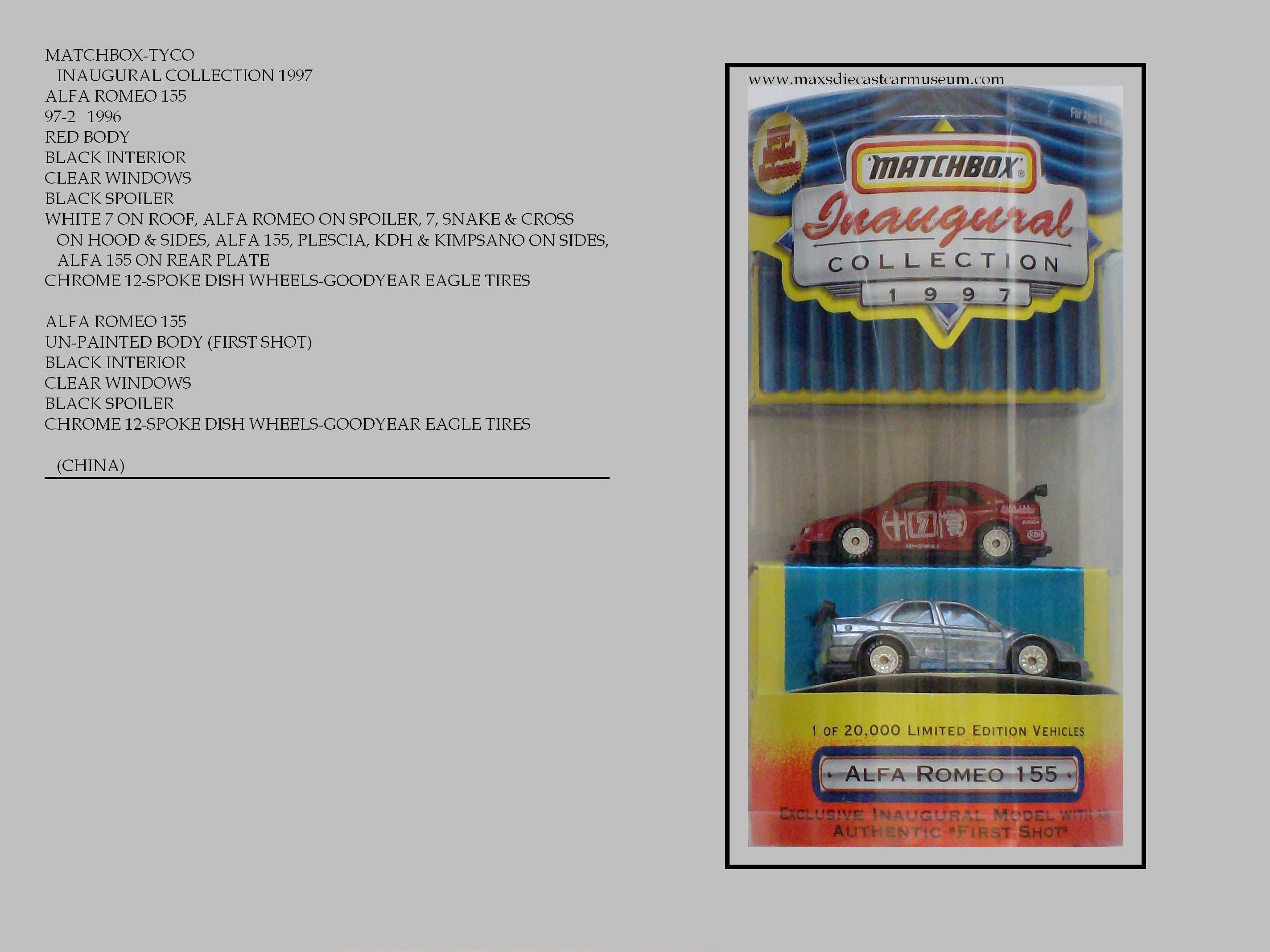 The INAUGURAL COLLECTION offers a detailed New Model version, Paired with a First Shot version. First Shot also known as pre-production are among the first castings, assembled unpainted, Or painted in colors or schemes that did not reach production. All Pre-Production models are highly desirable.