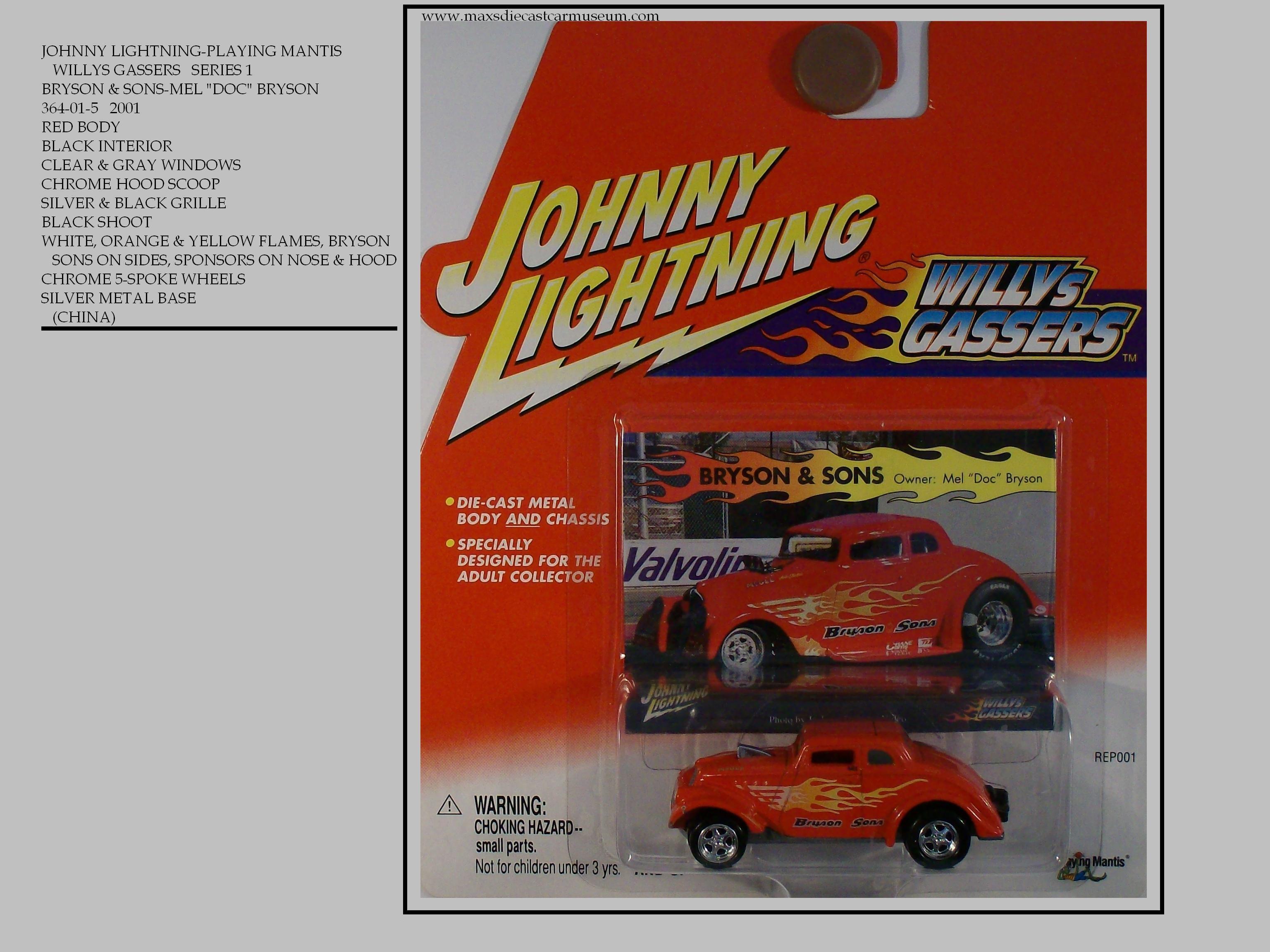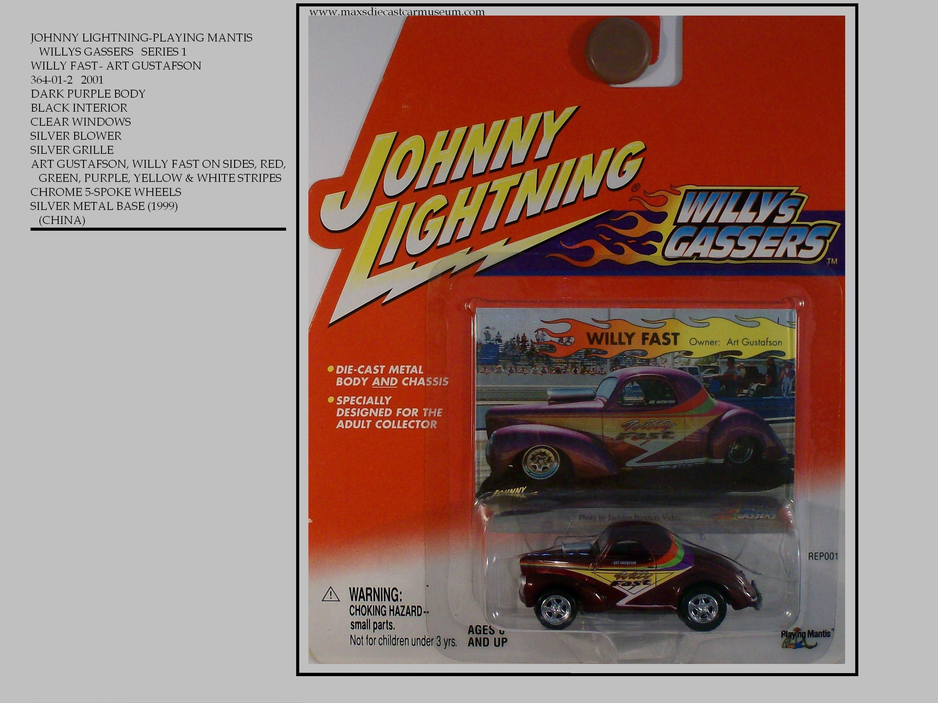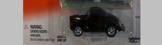 The WILLYS GASSERS series are replicated actual cars. They include a card with a picture of the actual car posed or in action, The name the owner chose to give the car and owners identification. The chocolate brown version of this 1941 Willys is one of just a few solid single color (No Graphics) cars in the collection.