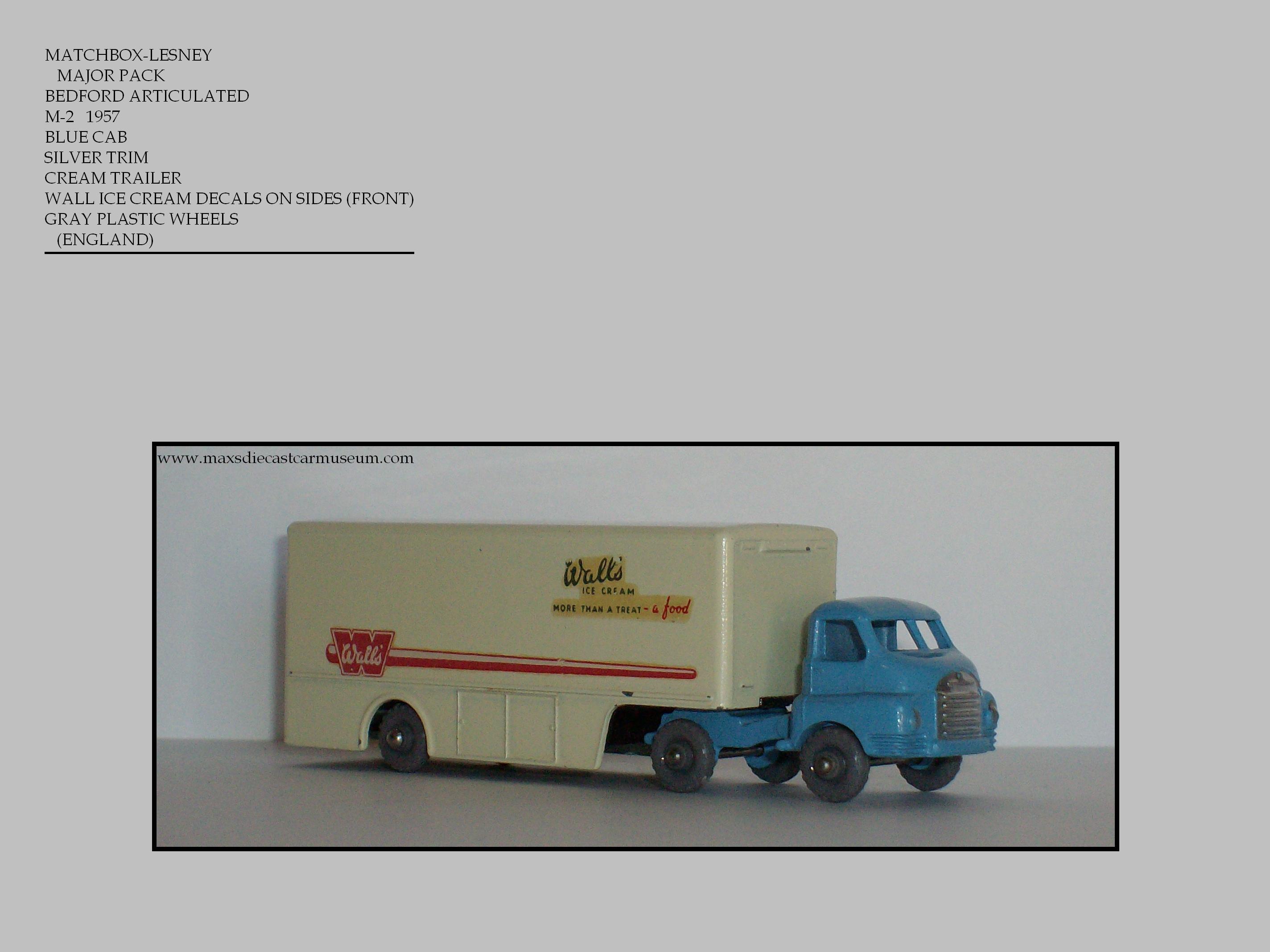 Thru the late 1950s and early 1960s Lesney offered the Major Pack Series, A larger scale of models than that of the Regular Wheels and included many Semi Tractor-Trailers. This series offered few variations with one exception. The COOPER-JARRETT INTERSTATE DOUBLE FREIGHTER had variations including Boxes, Door Colors, Dolly Colors, Trailer Colors even Logo variations.