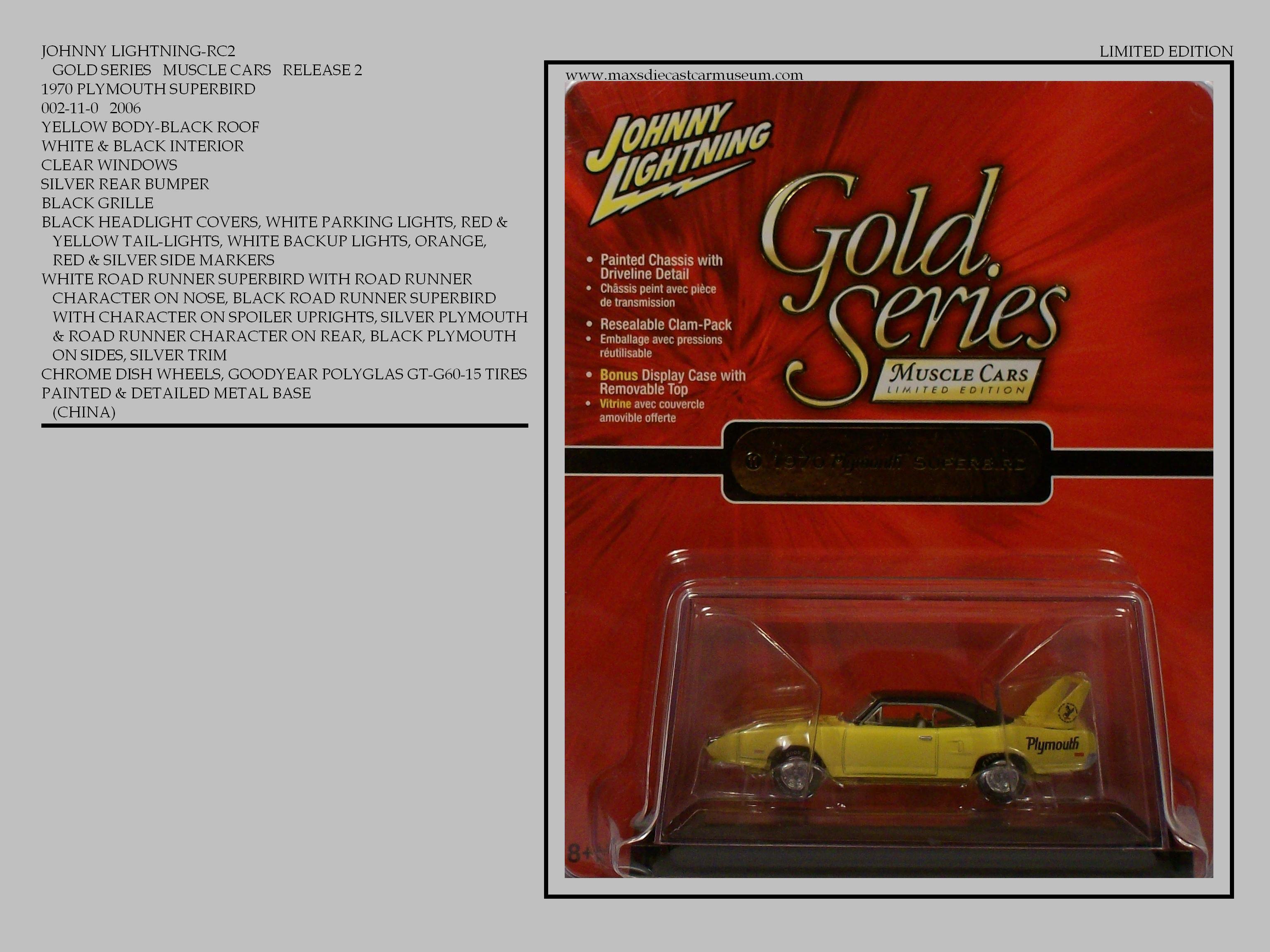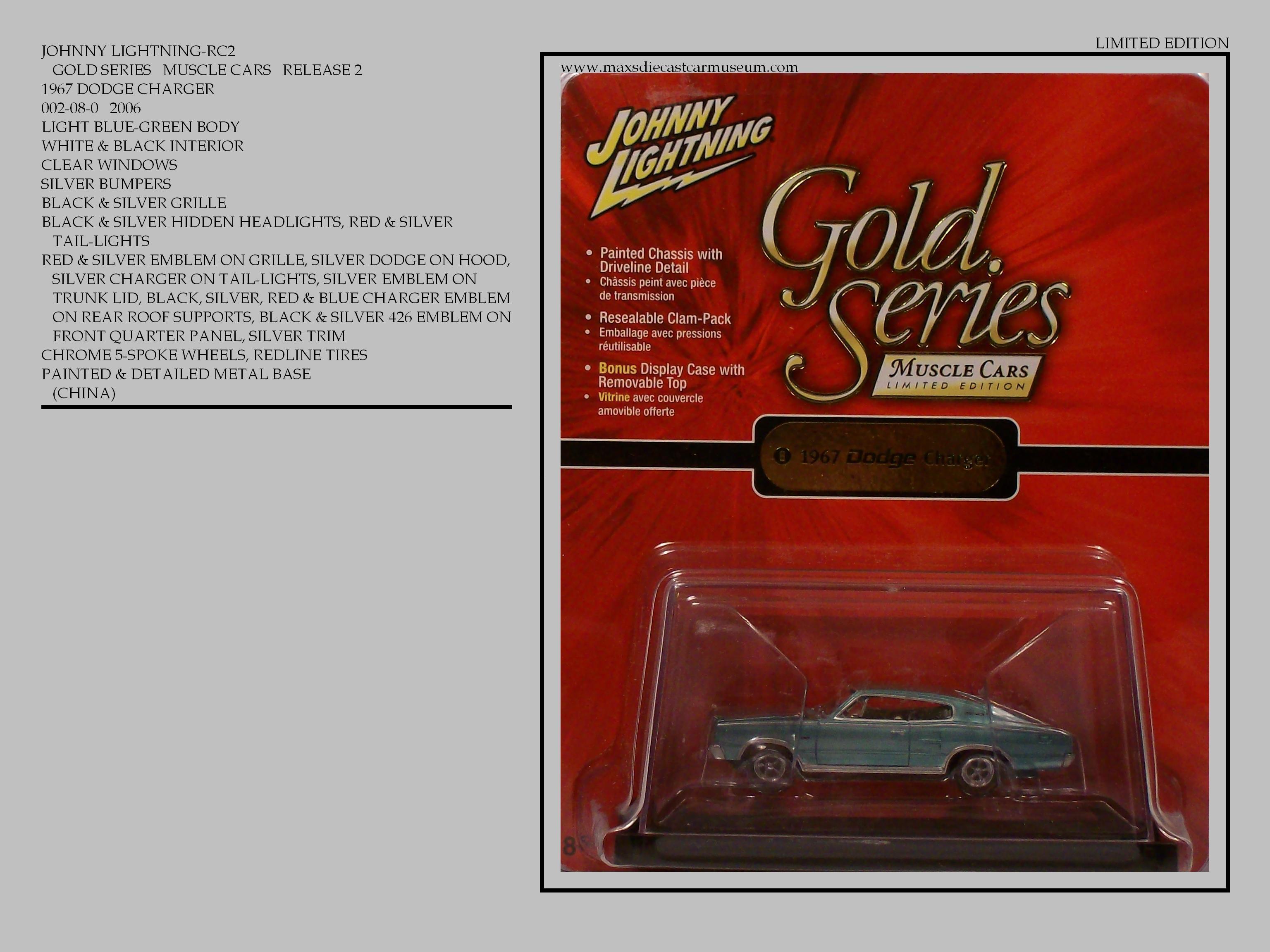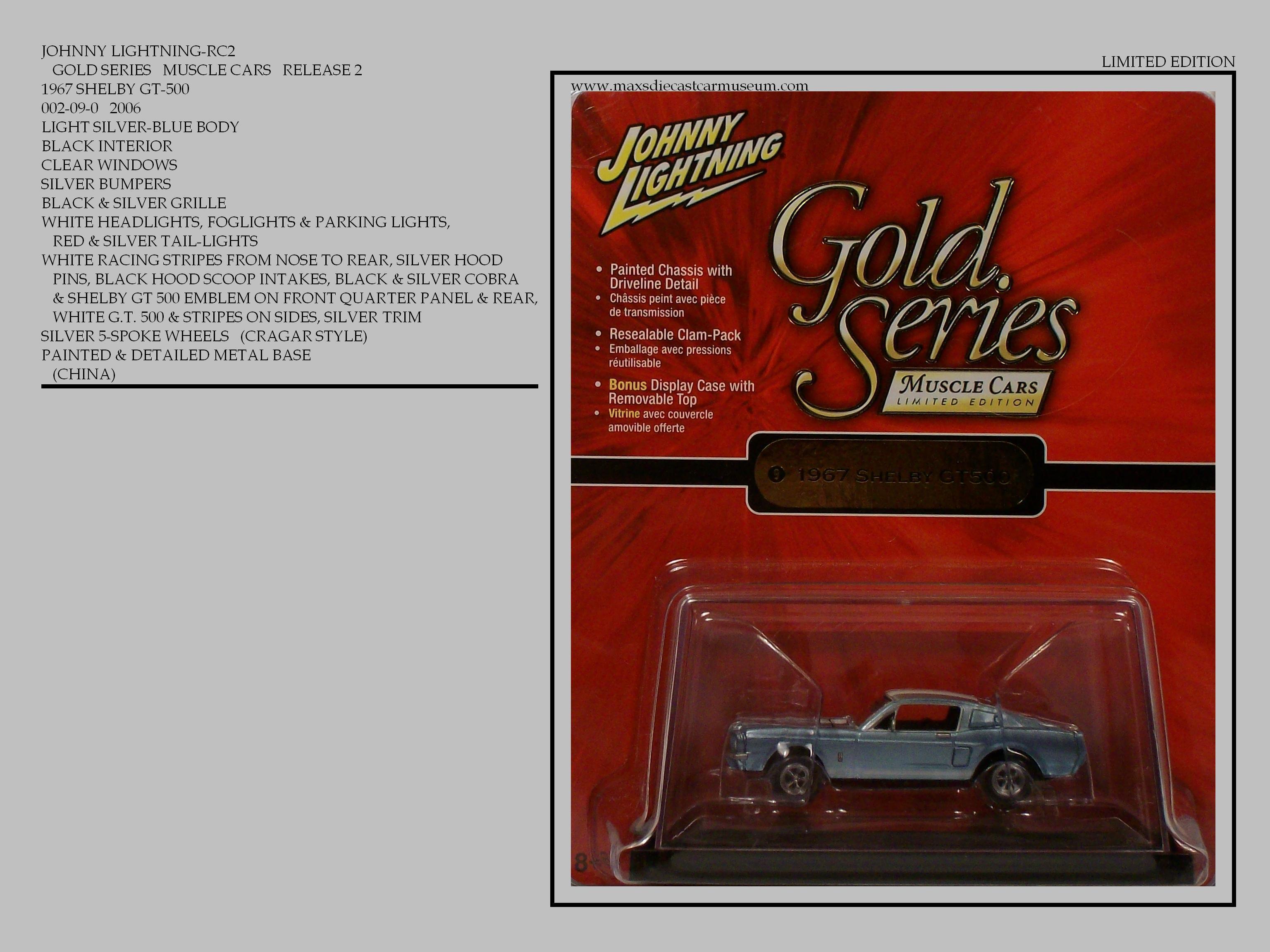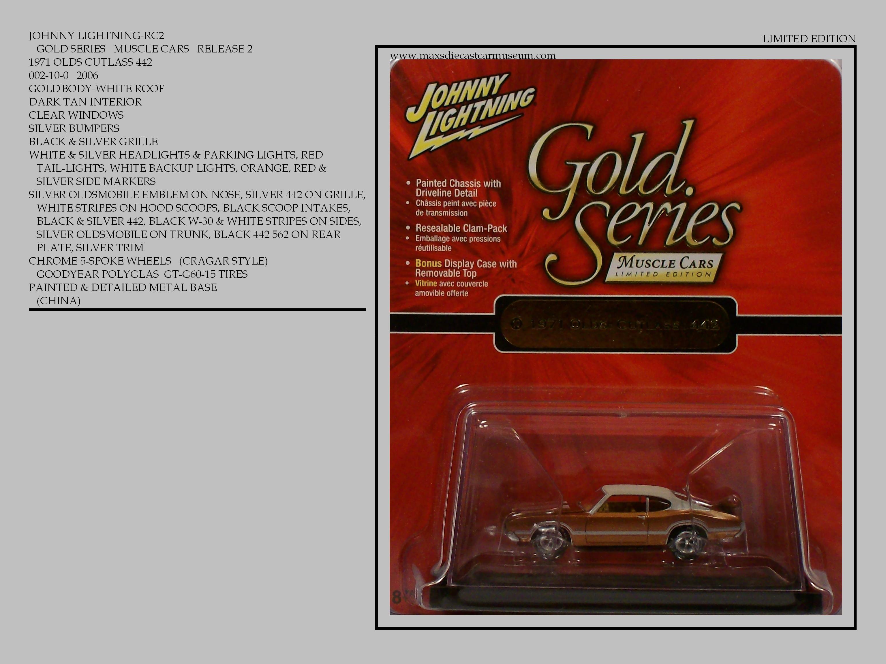 The GOLD SERIES MUSCLE CARS are highly detailed models with opening hoods. They have a mirrored display base with some having vehicle identification on base and include dust covers. Each release have four or more cars and are separated into numeric series. Model numbers are continuous, Rather than starting with number one with each new release. Most are limited to five thousand cars per model.