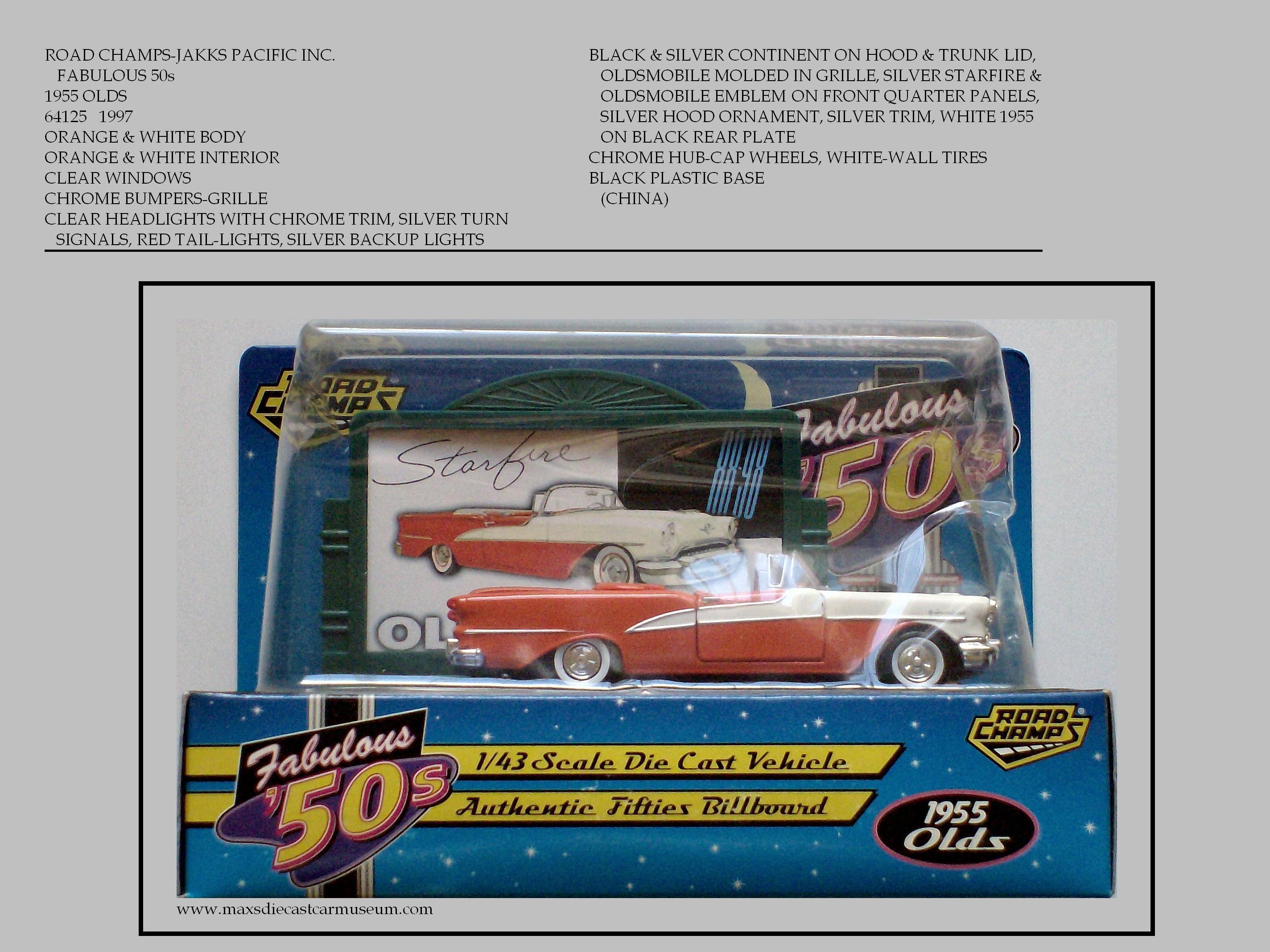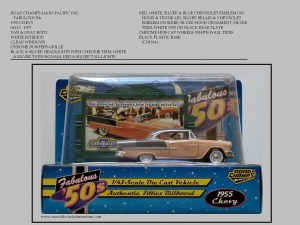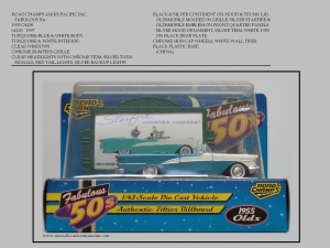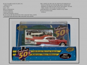 The FABULOUS 50s Collection are 1/43 Scale models of cars from the 1950s. The series include billboards with images of actual roadside billboards of the era. The series offer color variations.