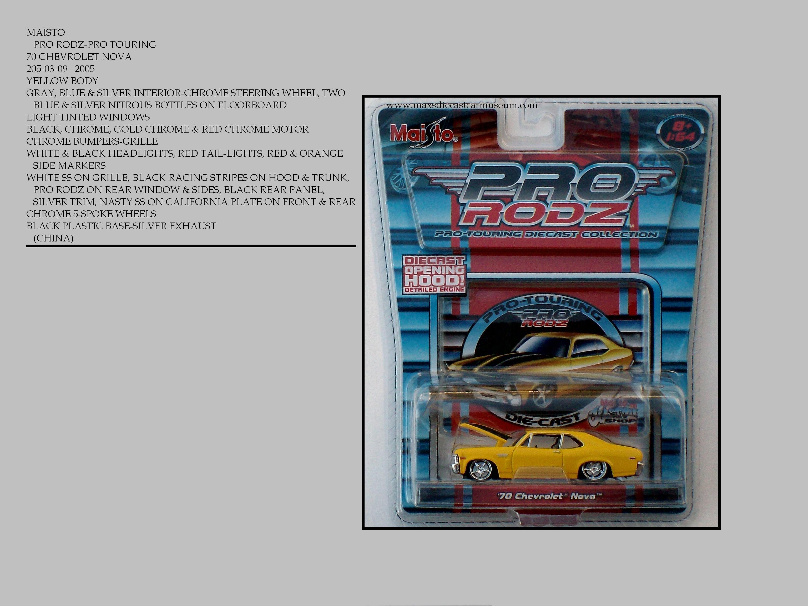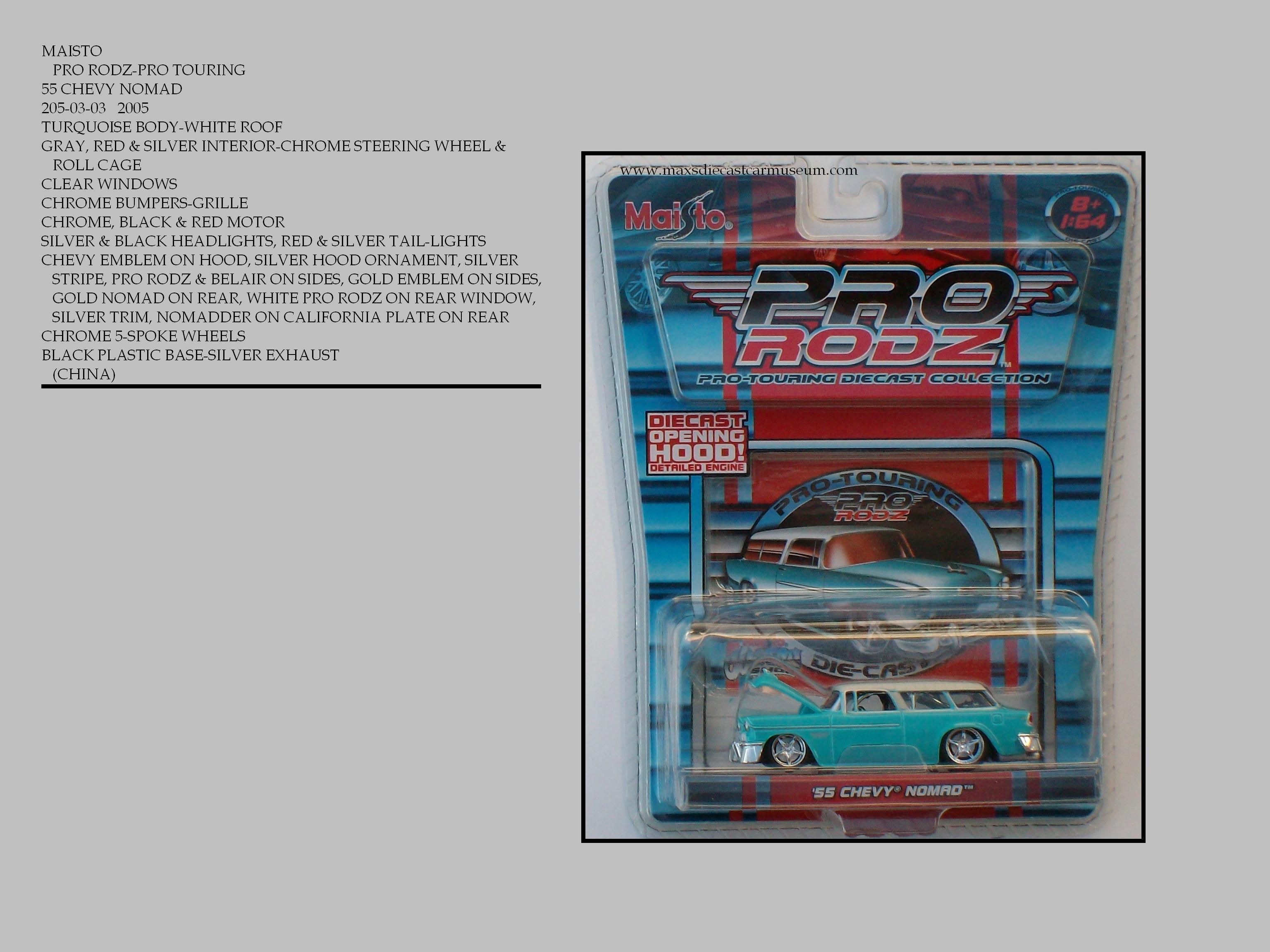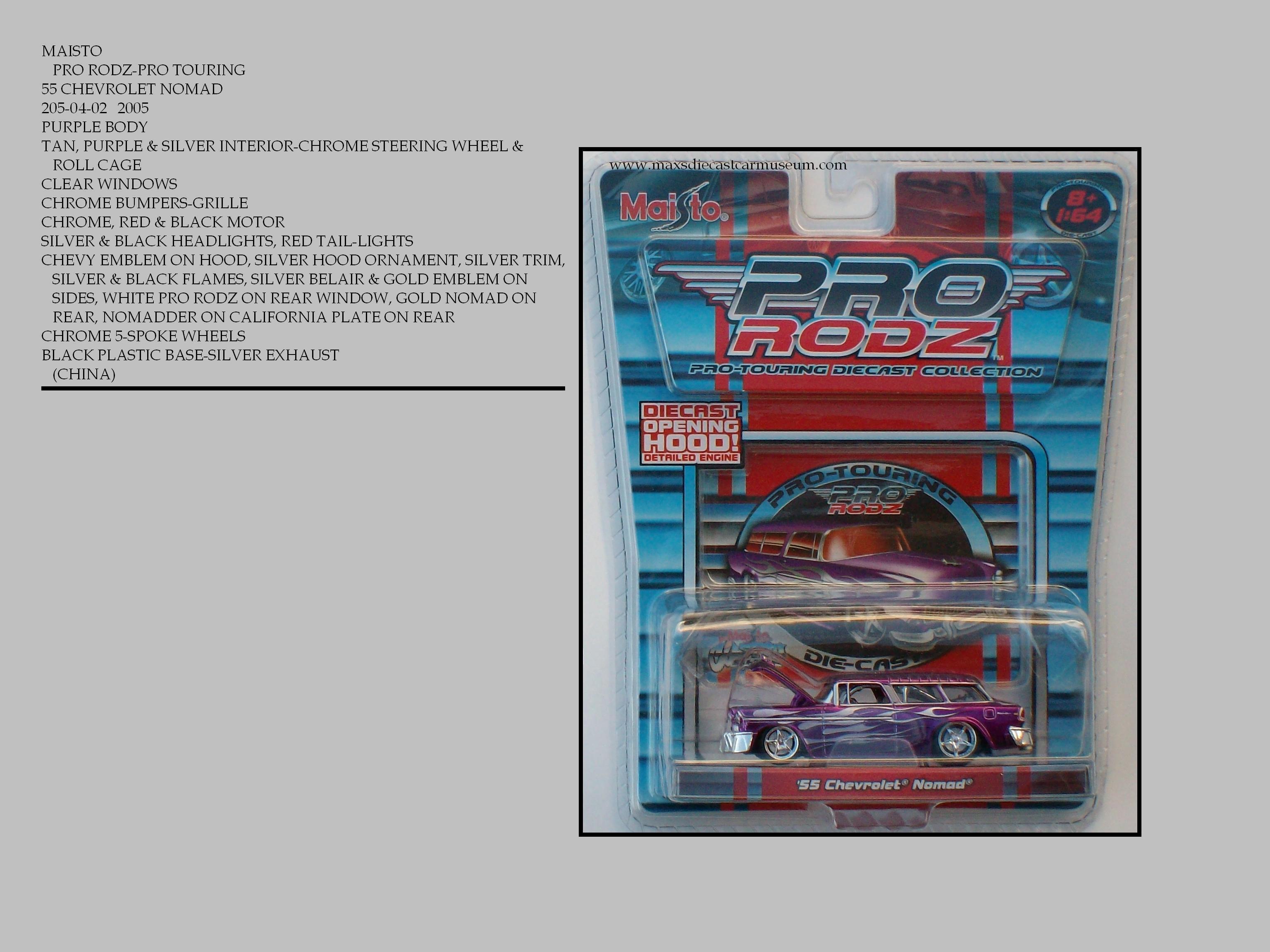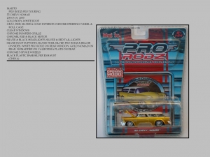 The PRO RODZ PRO-TOURING collection are street legal Race Cars. These models have very detailed interiors including Dash Boards and Roll Bars, Very detailed Motors and Engine Compartments and very detailed Chassis. They also offer lots of wheel and color variations and come with a collectors card.