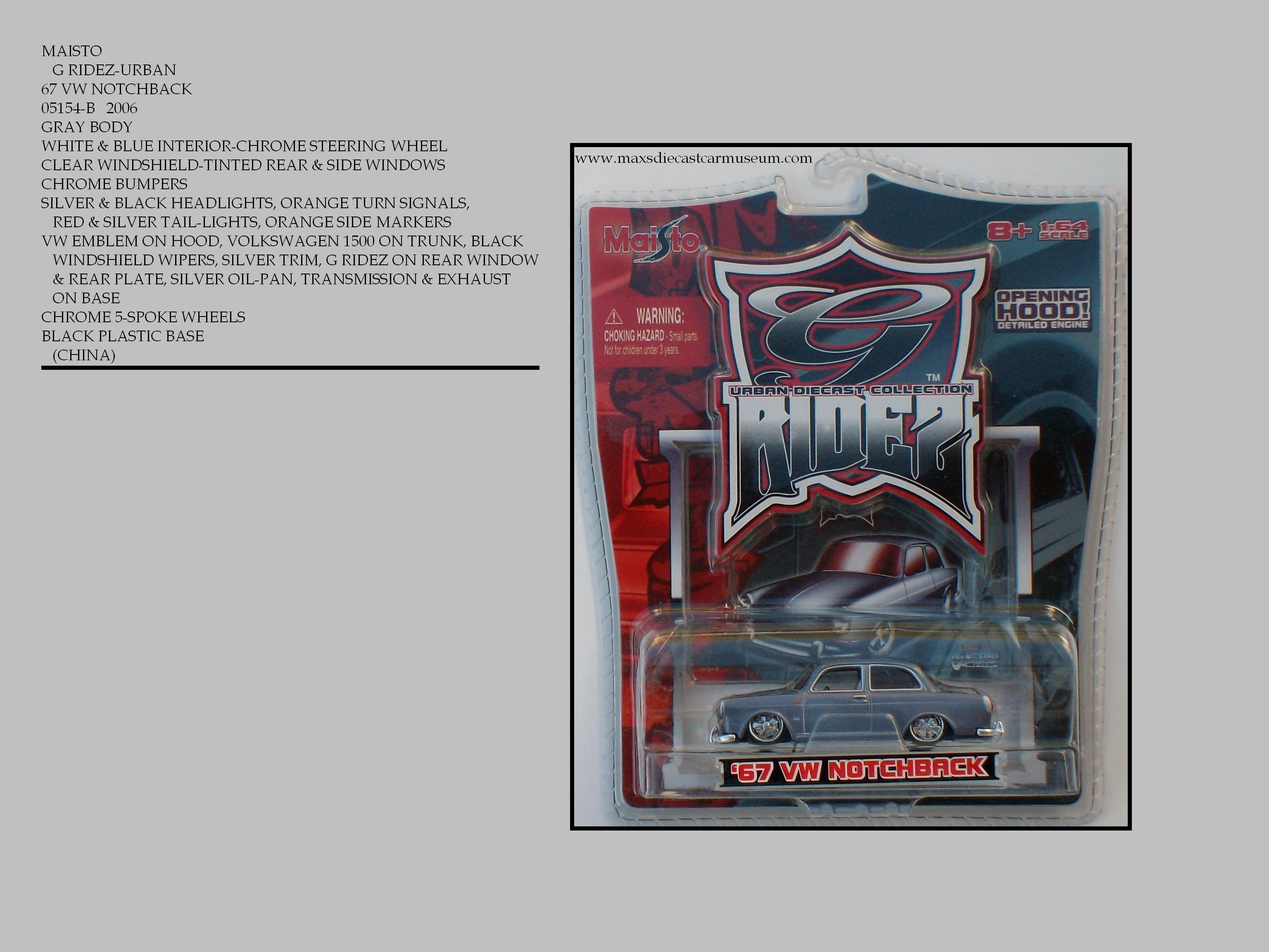 G-RIDEZ-URBAN are Hot Rods and Customs featuring opening hoods, Opening rumble seats, Custom wheels and wide tires. They are offered in single blisters and five-packs. They offer a huge array of color variations. The single blister packs include a collectors card with a strong warning not to take your eyes off your car in L.A.