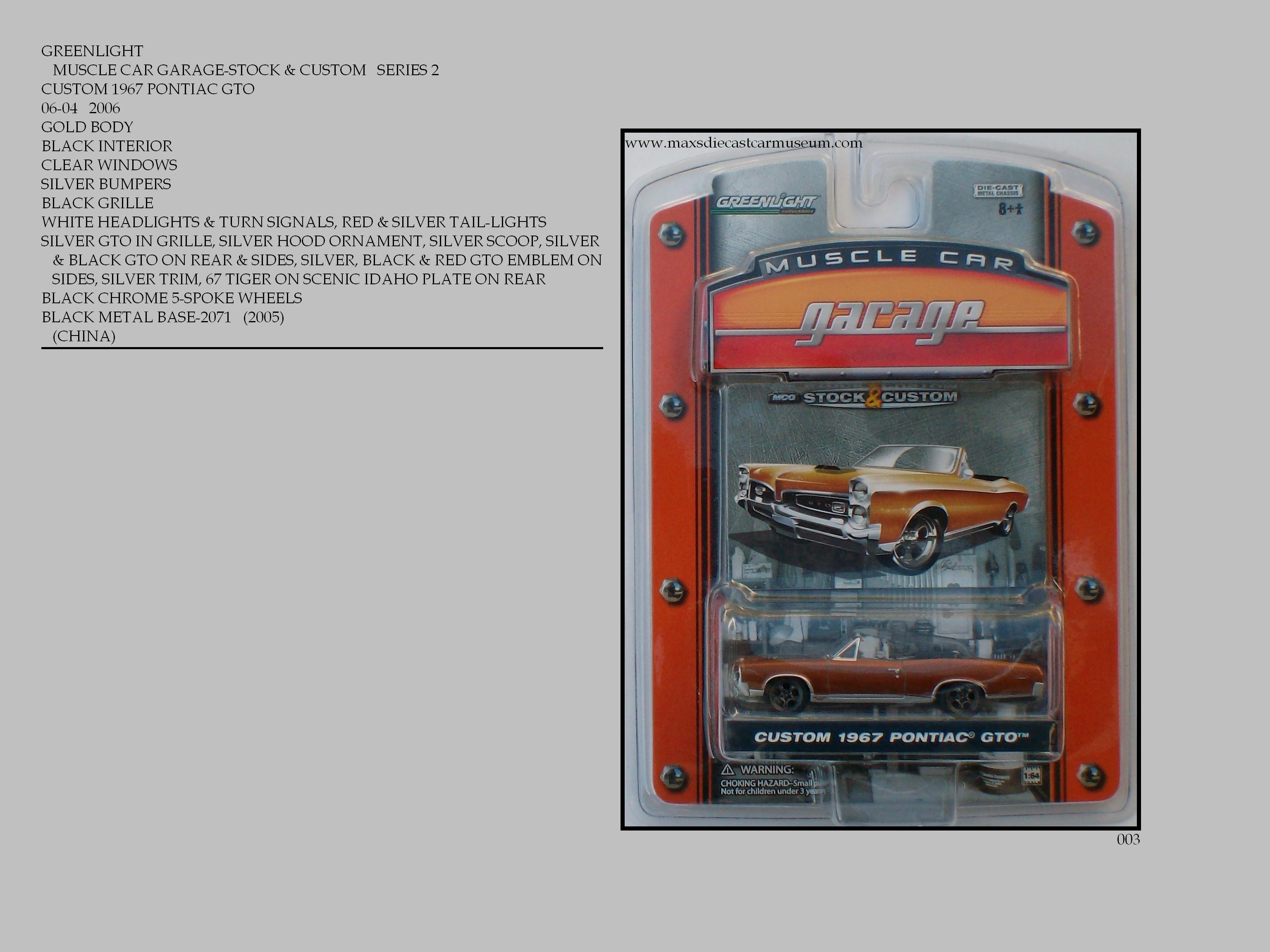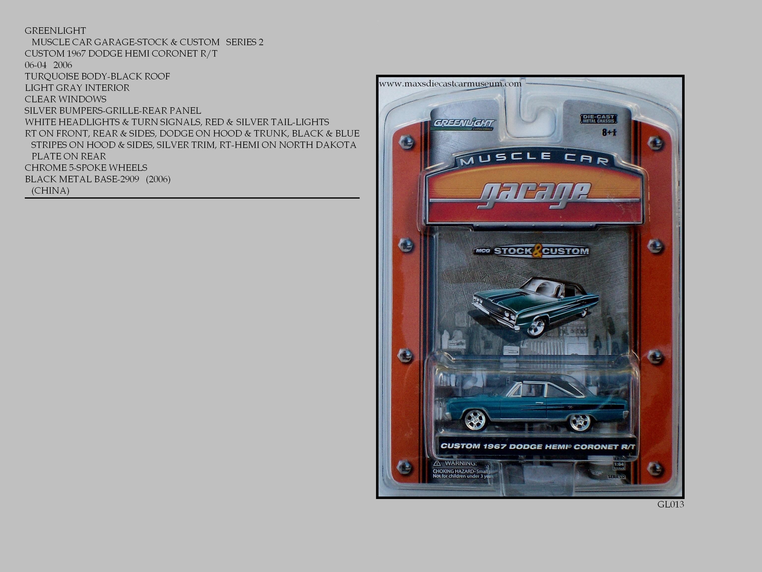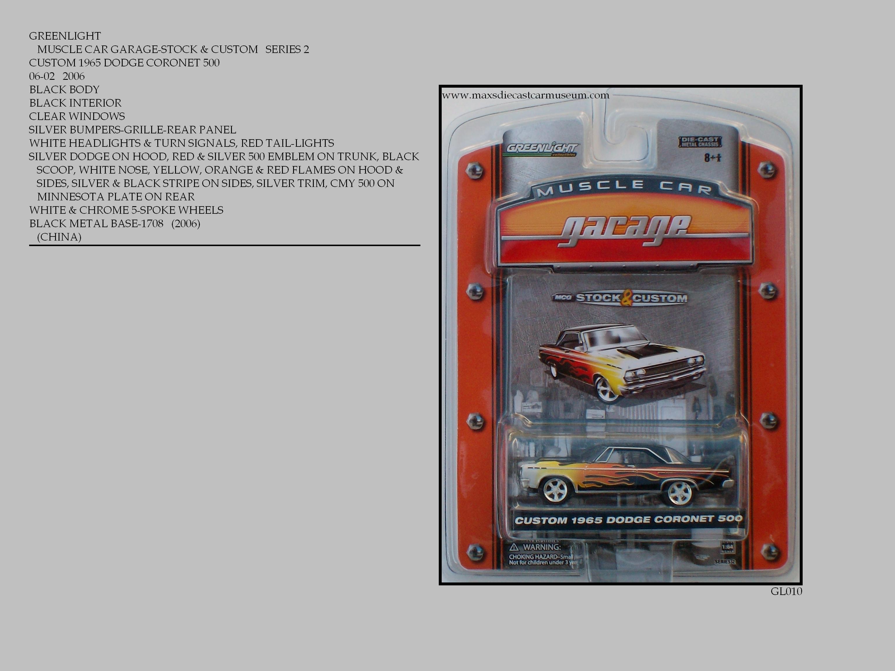The MUSCLE CAR GARAGE STOCK & CUSTOM collection offer factory stock versions and costomized versions of the same cars. There are plenty of paint color and paint scheme variations along with wheel and tire variations. They also have personalised state based plates and numbered chassis.