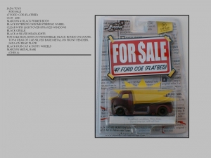 FOR SALE is a unique collection of beaters in need of tender loving care. The cards are want adds torn from a newspaper. Each car comes with a For Sale collectors card with the name of the model. There are for sale signs on the cars with an asking price.