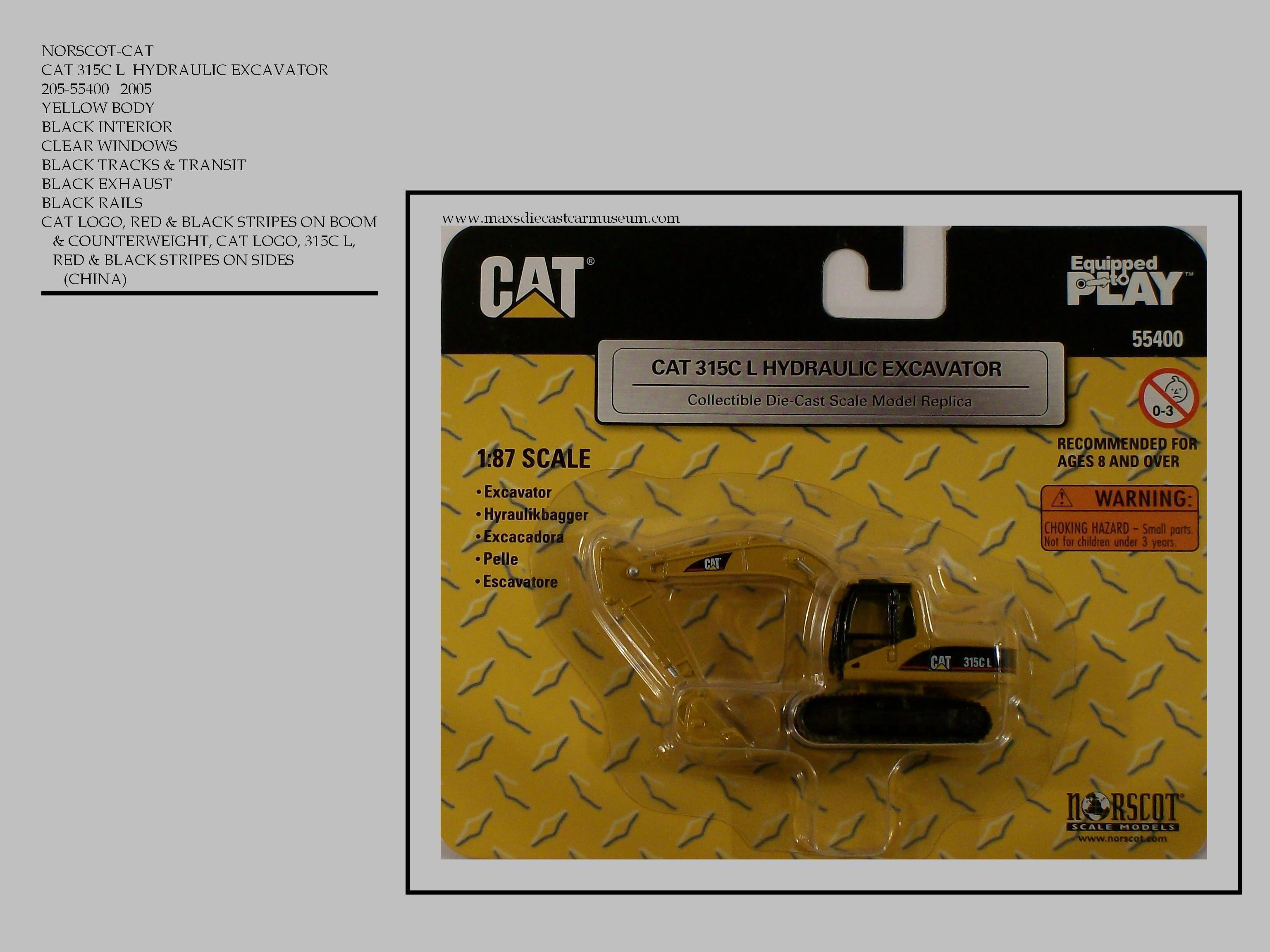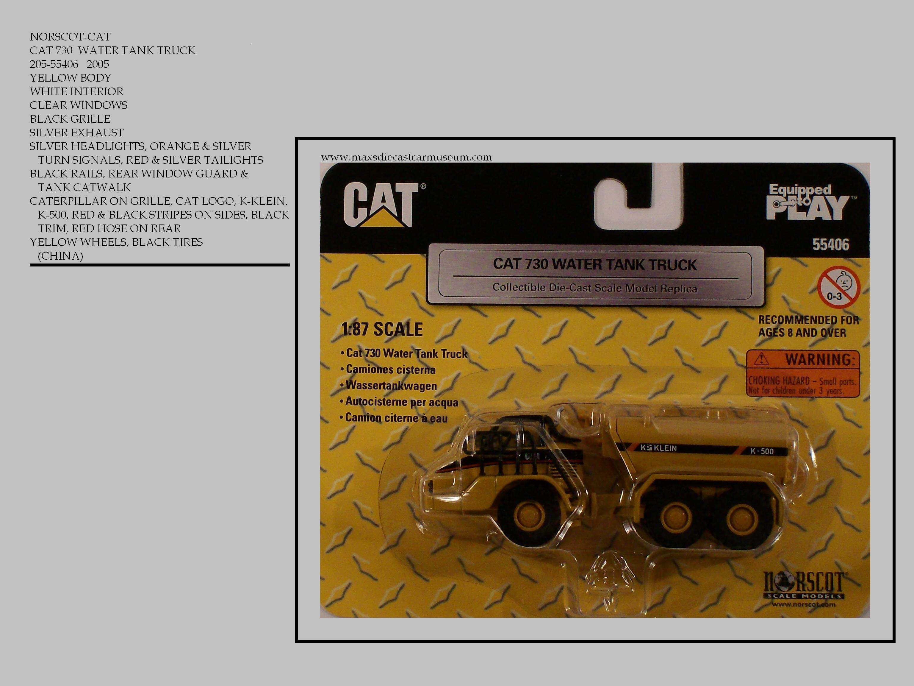 CATERPILLAR is one of many companies Norscot produce promotional products for. The Caterpillar Collection offer many moving parts including swivelling turret and articulating body. They offer accurate colors and graphics. The 1/87 scale models are well suited for layouts. Although some contain a sizable amount of plastic, They are a nice display piece for the collector and a good value for players.