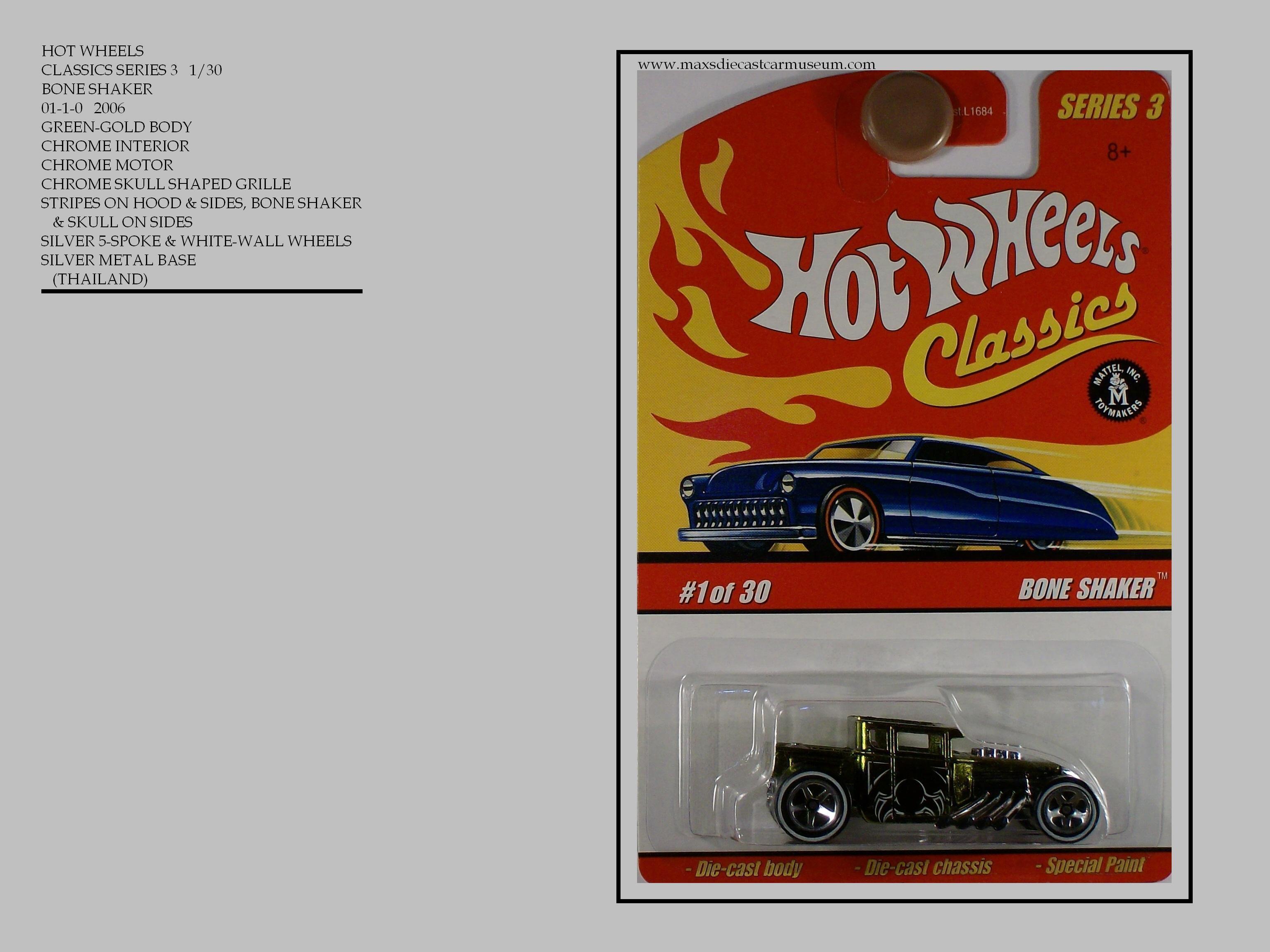 The Classics Series 3 displays the Purple Passion car on the card, same as series 1 and 2. Series 3 has thirty models with multiple variations. Series 3 offers several models that have been in the Hot Wheels line since the earliest releases. The #30 06 DODGE VIPER is sure to be a classic in the Hot Wheels line for years to come.